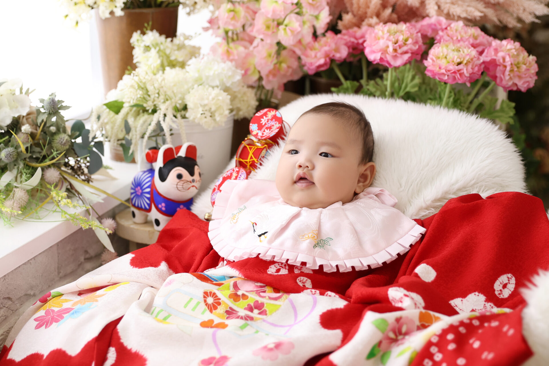 この時期の赤ちゃんは、表情もとっても豊か♪お宮参りの時の表情とは異なる、新たなかわいい表情をお写真に残すことができます。